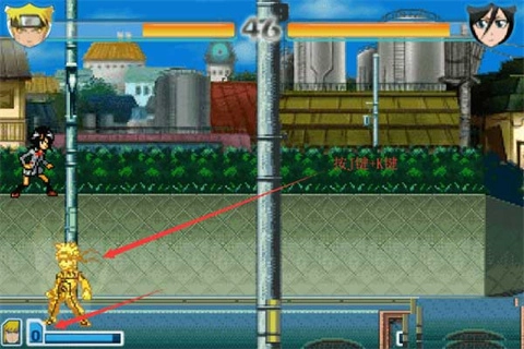 当能量条累积到3格时,同时按下J键与K键,就能变身为金色鸣人形态。
