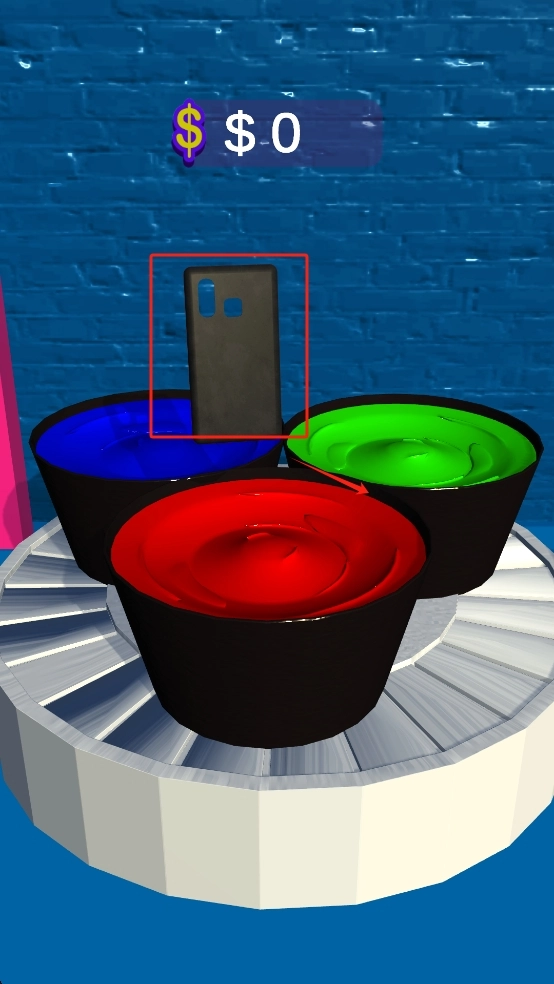 挑选染色池的颜色,把黑色手机壳放进去浸泡,按照关卡的要求打造出指定颜色的手机壳,完成设计之后,点击预览按钮就能查看手机壳的整体效果啦。