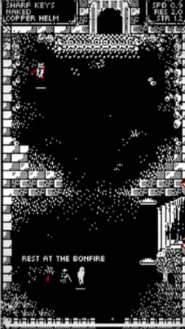 2、游戏整体采用黑白像素风格,设有多种不同地形场景,可供玩家探索