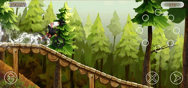 山地自行车赛游戏的操作极为简便,简便到完全不需要新手教程,屏幕下方左右两侧分别设有刹车和加速按键。