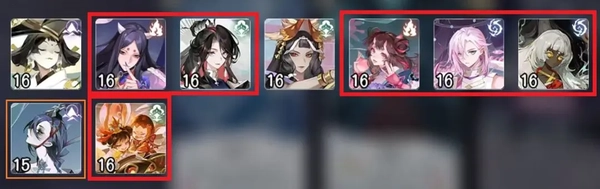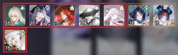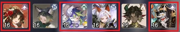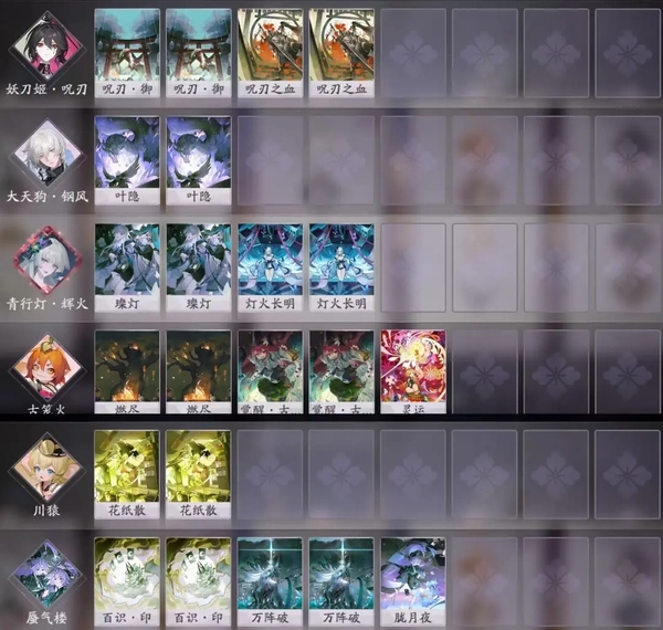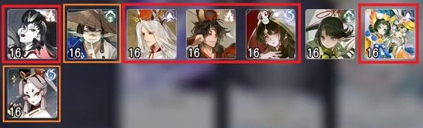原本有辉灯、红莲,勉强再加上一个花修凑数。现在红莲被削弱得比较多,只能依靠新式神偶尔带飞一波了。