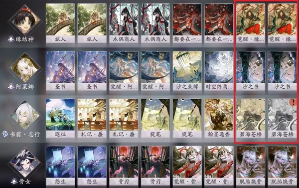 常规带卡方案为单觉醒配置,实现满业力回复效果。部分情况下会选择满编觉醒慧明灯,以此增强队伍对抗快攻的能力。