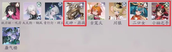 更常见的还是酒吞、二口女这类大妖。要是想玩的话,推荐下面这套攻守兼备的阵容。