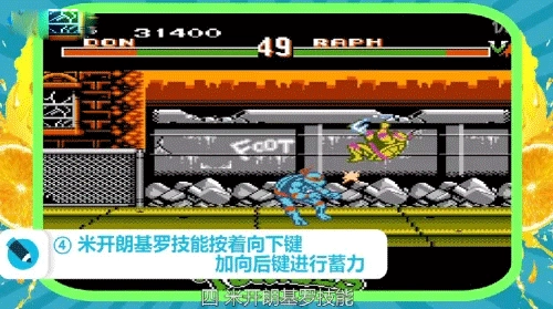 激龟快打手机版是一款像素风格的忍者神龟动作格斗游戏,它由经典红白机游戏移植而来,国内玩家小时候在小霸王上大概率都玩过。这款游戏对抗性十足,每个角色不仅拥有强力技能,还具备独特的战斗方式,玩家能自由选择角色与敌人展开对决。