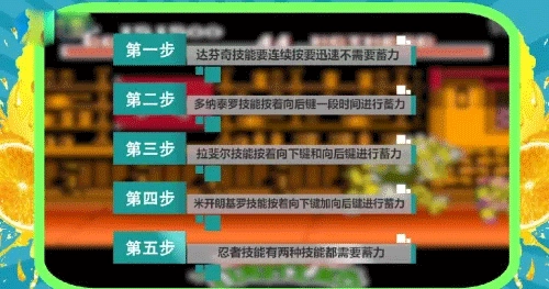 忍者技能包含两种释放方式:第一种需按住前向键与下向键蓄力,随后按下前向键和攻击键;第二种则是按住下向键和后向键持续蓄力一段时间,接着按下上向键和攻击键。