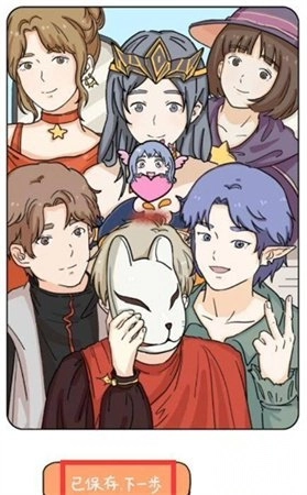 换装完成后,需进行合影留念。先点击“拍照”按钮完成拍摄,拍摄结束后点击“纳入回忆”,随后点击“已保存”,最后点击“下一步”即可。