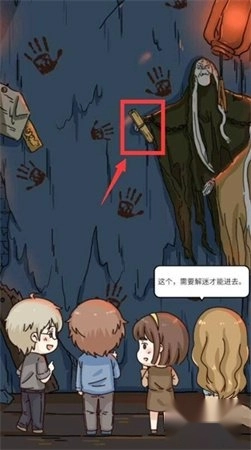 剧情结束后,来到鬼屋的大门口,点击鬼手中的图纸以开始解谜。