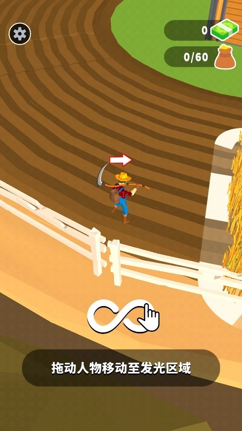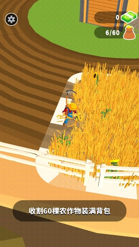 这是一款休闲模拟类游戏,玩法简单,玩家在游戏里仅需完成基础的收割操作即可。