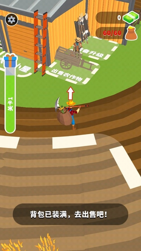 卖掉收获的农作物能换取钱财,再用这些钱来升级装备,从而提高收割的效率。
