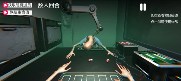 另外,轮盘对局游戏里还藏着各式各样的道具,像复制器、锤子、针剂、观测器之类,每个道具都有独特的功能——复制器能复制对手的道具,针剂则可以恢复一格生命值,这对玩家的心理素质和生理反应都是不小的考验。屏幕前的你,能顺利通过这场医学主题的挑战吗?赶紧来试试吧!