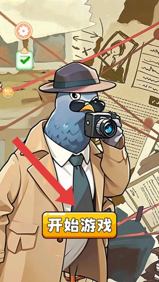 需点击开始游戏按钮才能进入,这是休闲解谜或冒险类游戏的初始画面,展示着开启入口与角色设定。