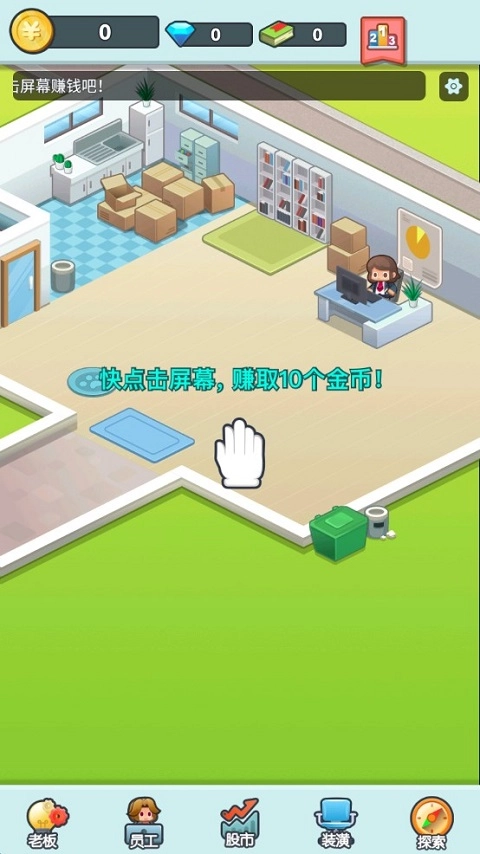 作为公司老板,首要掌握的是赚钱的能力,这款游戏玩法简单,玩家只需快速点击屏幕就能获得收益。