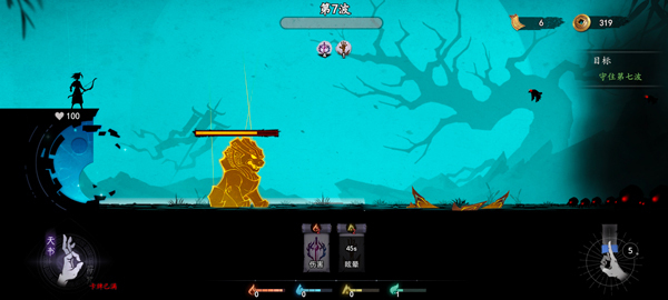 4、每个关卡最后一波次还有强大的首领怪物,玩家可通过局外装备的天书技能,来造成大量伤害;