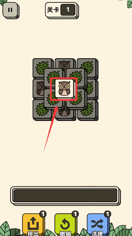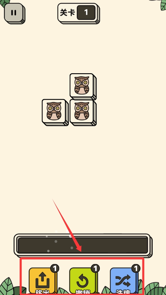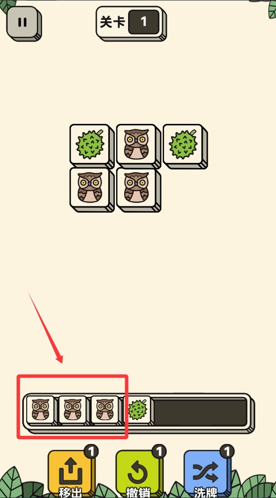 下面排列3个一样的猫头鹰就会消除。