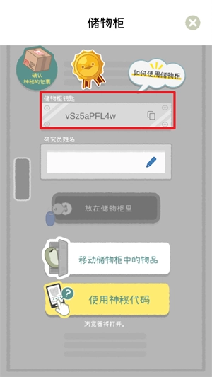 4、储物柜的钥匙为一串密码,玩家只需点击下方的【移动储物柜中的物品】,就能在不同设备上继续自己的游戏进度。