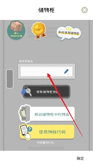 2接下来会进入储物柜的解谜环节,点击研究员姓名的输入框,输入自己的名字。
