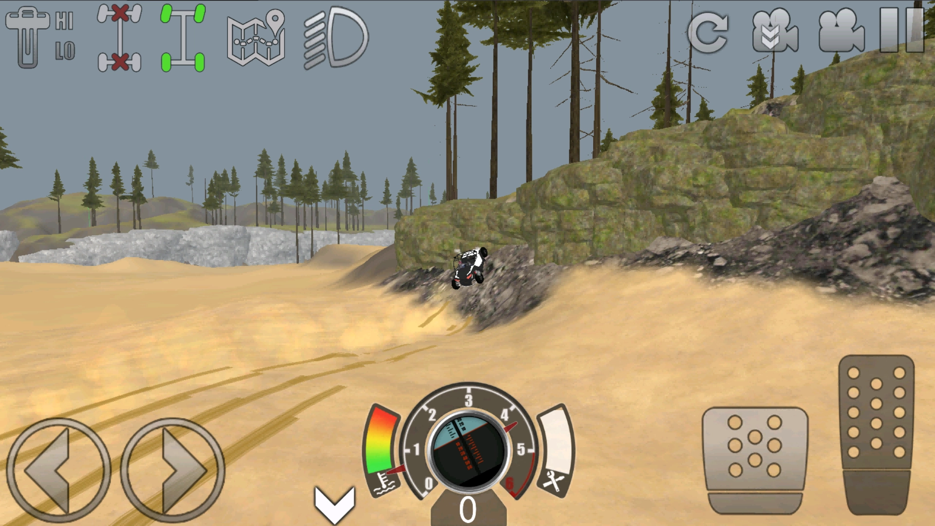左手的虚拟摇杆用来操控方向,右手的按键则分别负责油门和刹车的控制。操作起来简单容易上手,不过需要精准的配合,这样才能防止车辆出现侧翻或者打滑的情况。
