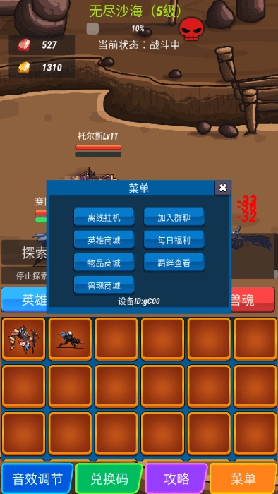 你可以点击探索按键,选择无尽沙海挂机战斗。
