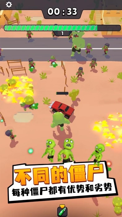 3. 各类僵尸敌人设计丰富多样,涵盖普通丧尸、冲刺僵尸、变异巨兽等,让战斗更具挑战性。通过滑动屏幕来操控战车的行进方向,战车会主动攻击靠近的敌人。玩家需留意躲避障碍物与僵尸的合围,同时持续歼灭敌人。