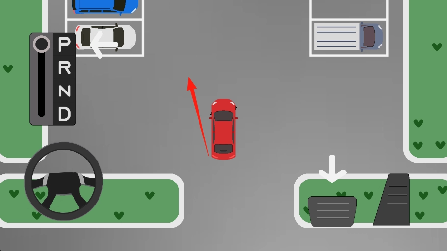 按照箭头指示的方向,调整车辆的行驶路线,通过操控方向盘和踏板,把车准确停进指定的目标车位,这样就能完成停车任务,进而解锁新的关卡。