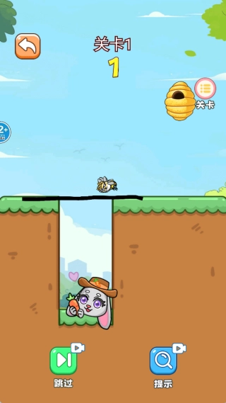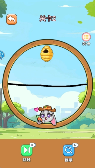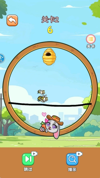 3、认真观察场景里的结构,明确兔子与蜜蜂所在的位置,借助合理的画线操作来达成关卡任务。