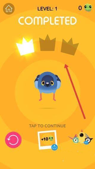 3、完成LEVEL1,看【COMPLETED】界面,点击继续,争取收集更多道具获皇冠,提升关卡评价,解锁新挑战。