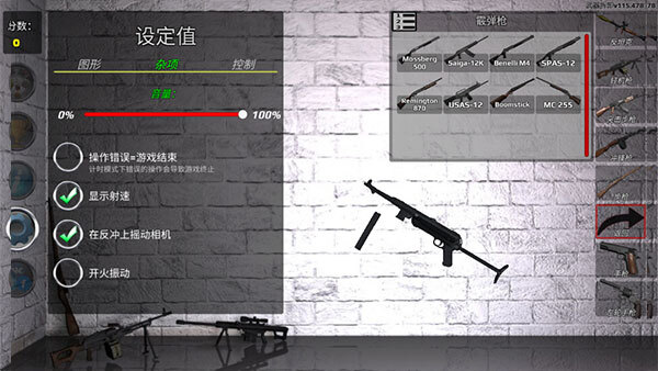 1、进入游戏后,玩家能够借助左侧的控制面板来完成枪支的各项设定。