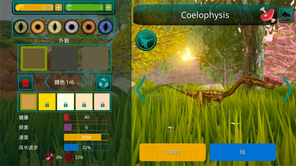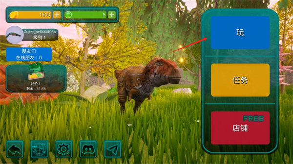 2. 首先,玩家得挑选一种恐龙。要记住哦——这可是你的专属恐龙!在这款恐龙游戏里,除了有食肉恐龙和食草恐龙之外,还有翼龙呢。