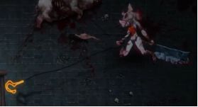 愤怒模式:当boss血量低于一定量(随难度变化),武器头发发出金色,身体出现血液升腾,攻击力有所提升。之后大吼一声将玩家震退至板边,之后会出现贯穿全屏的横向飞刃弹幕,穿过弹幕靠近boss,boss解除飞刃弹幕。