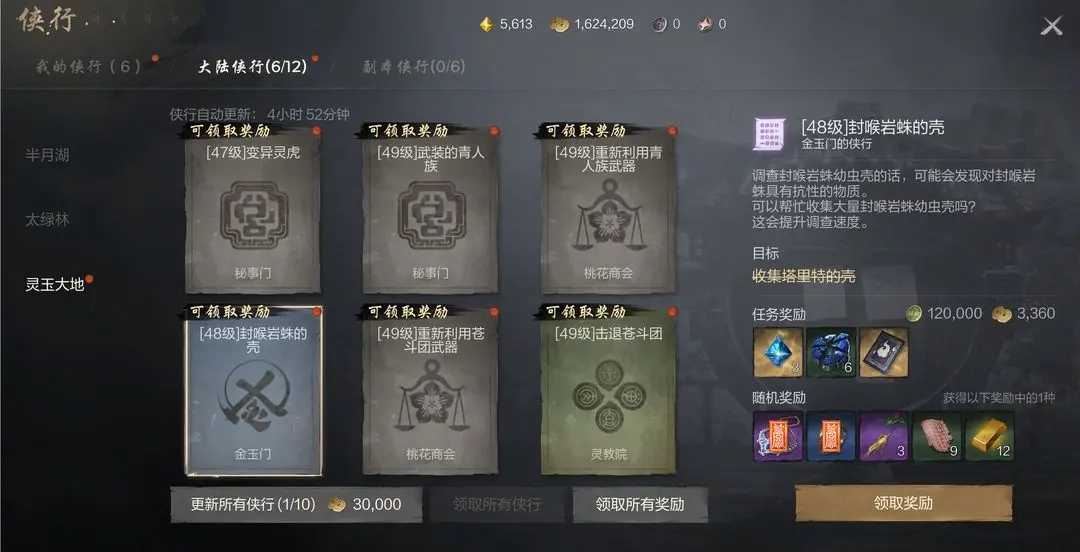 侠行任务属于每日任务,需要每天完成,灵芝们每日可接取12次该任务,接取次数会在次日4点重置。