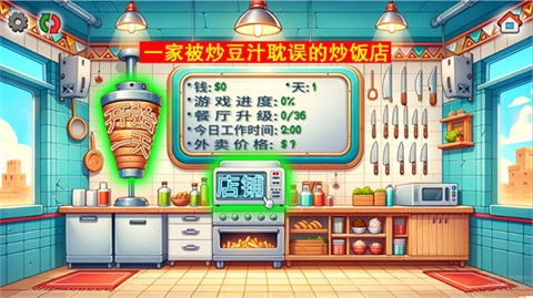 在店铺中间能看到店名是“一键被炒豆汁耽误的炒饭店”,点击下方的【开始一天】就能开启挑战。