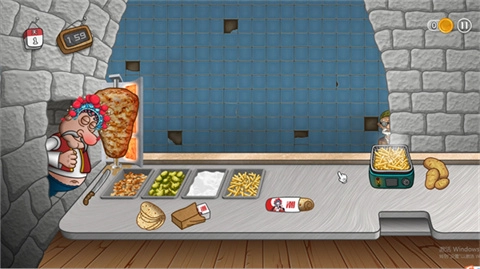 然后点击盘子里的薯条,这时就会自动放入卷饼上。