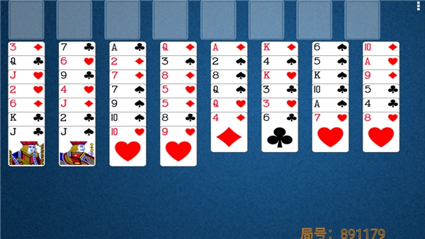 空当接龙的玩法是只用一副52张的牌,把牌正面朝上排成八列,之后通过移动这八列里的牌,来凑出四叠牌。