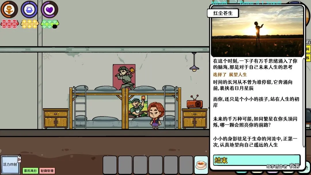 玩家所做的选择不仅会左右其人生走向与价值取向——比如偏向理性思考还是感性行事,还会改变和NPC之间的关系状态,从而触发各异的剧情分支。