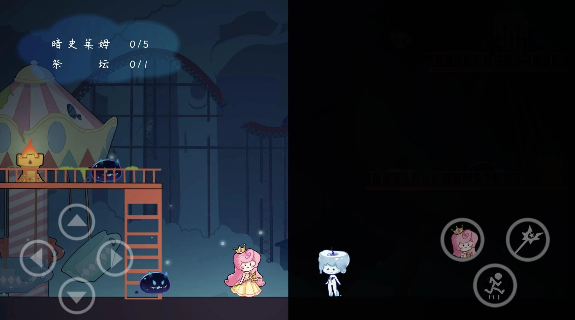 蜡烛与莉莉公主这两位主角都具备独特的能力。玩家需要巧妙运用这两种能力,相互配合来通过关卡。比如,蜡烛能够照亮昏暗的区域,莉莉公主则可以改变形态穿过狭窄的缝隙。