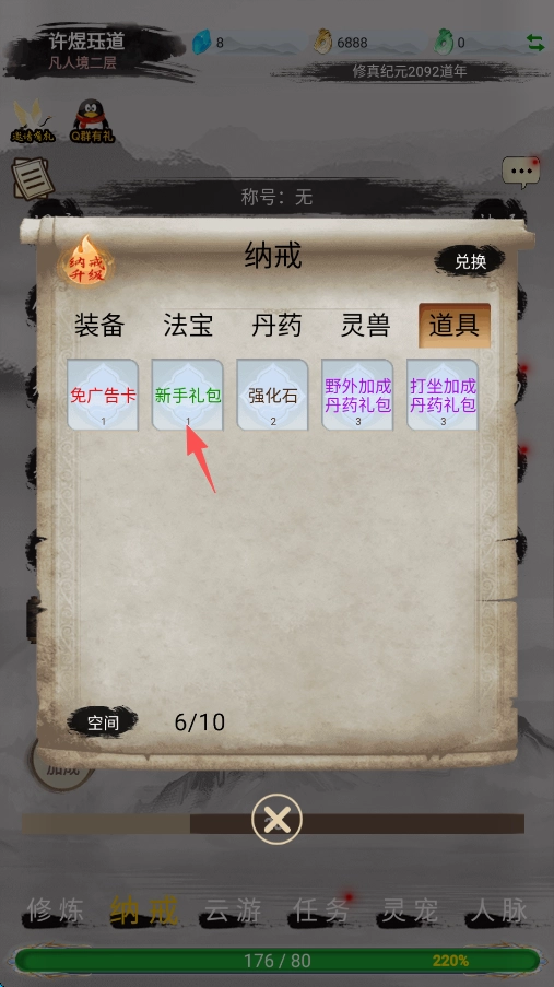 3、点击屏幕下方的“纳戒”,它相当于一般游戏里的背包。