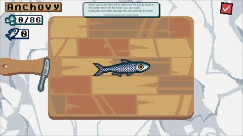 把你刚捕获的鱼带到沙丁鱼站,在那里可以给鱼去除鱼鳞。等你处理完鱼的鱼鳞后,按下右上角的按钮就完成啦!