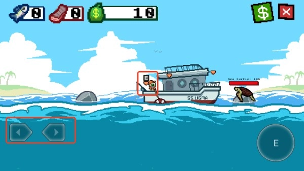 走到最左边的钓鱼台,按下E键就能开始钓鱼啦。钓鱼线会自己往下沉,你可以用左右方向键来调整它的走向。让鱼钩碰到鱼,这样就能给鱼造成伤害,等伤害累积到足够多的时候,就能把鱼钓上来了。