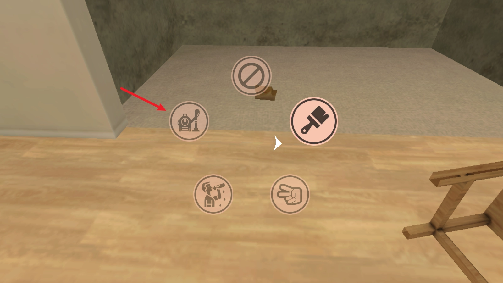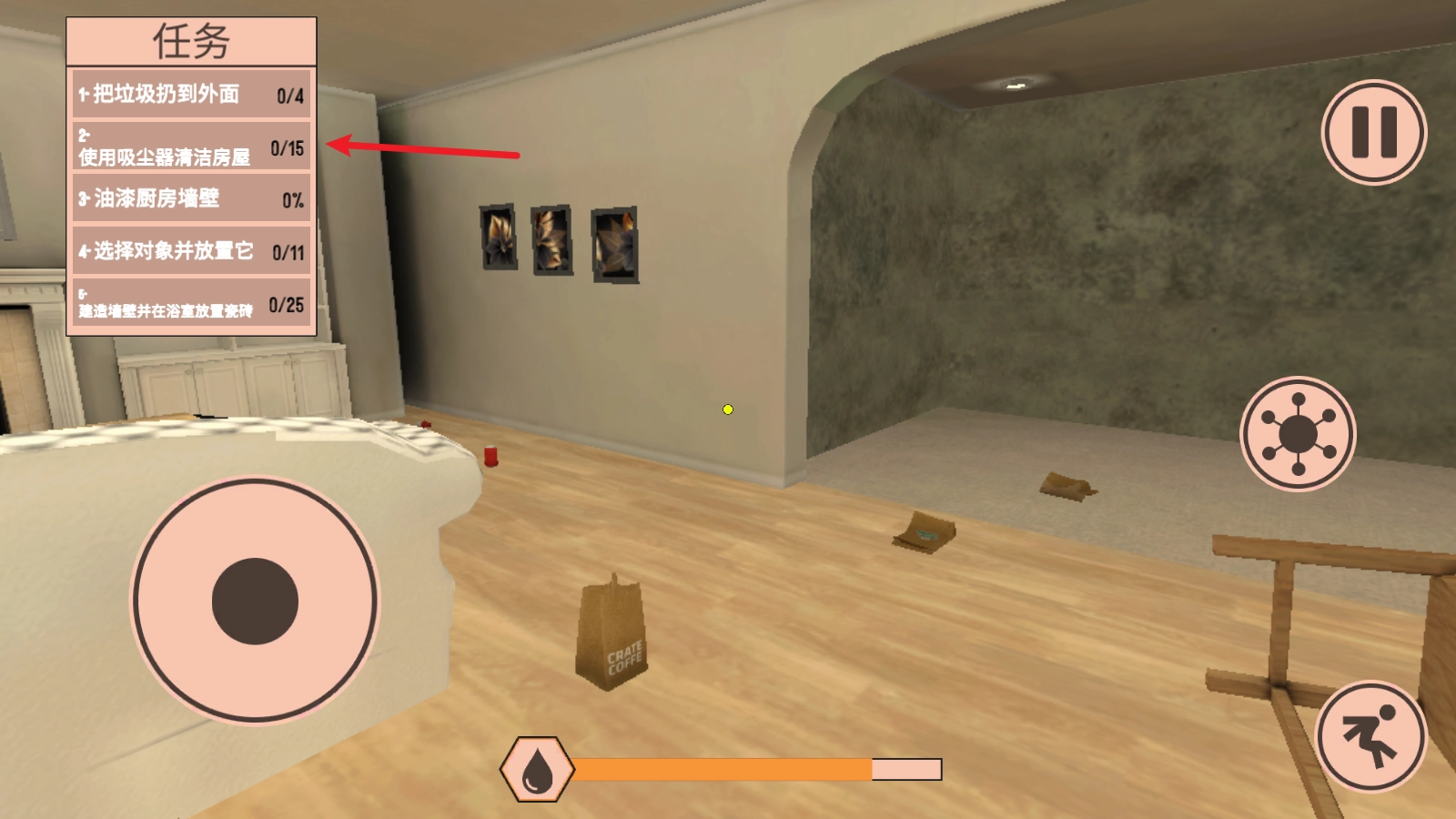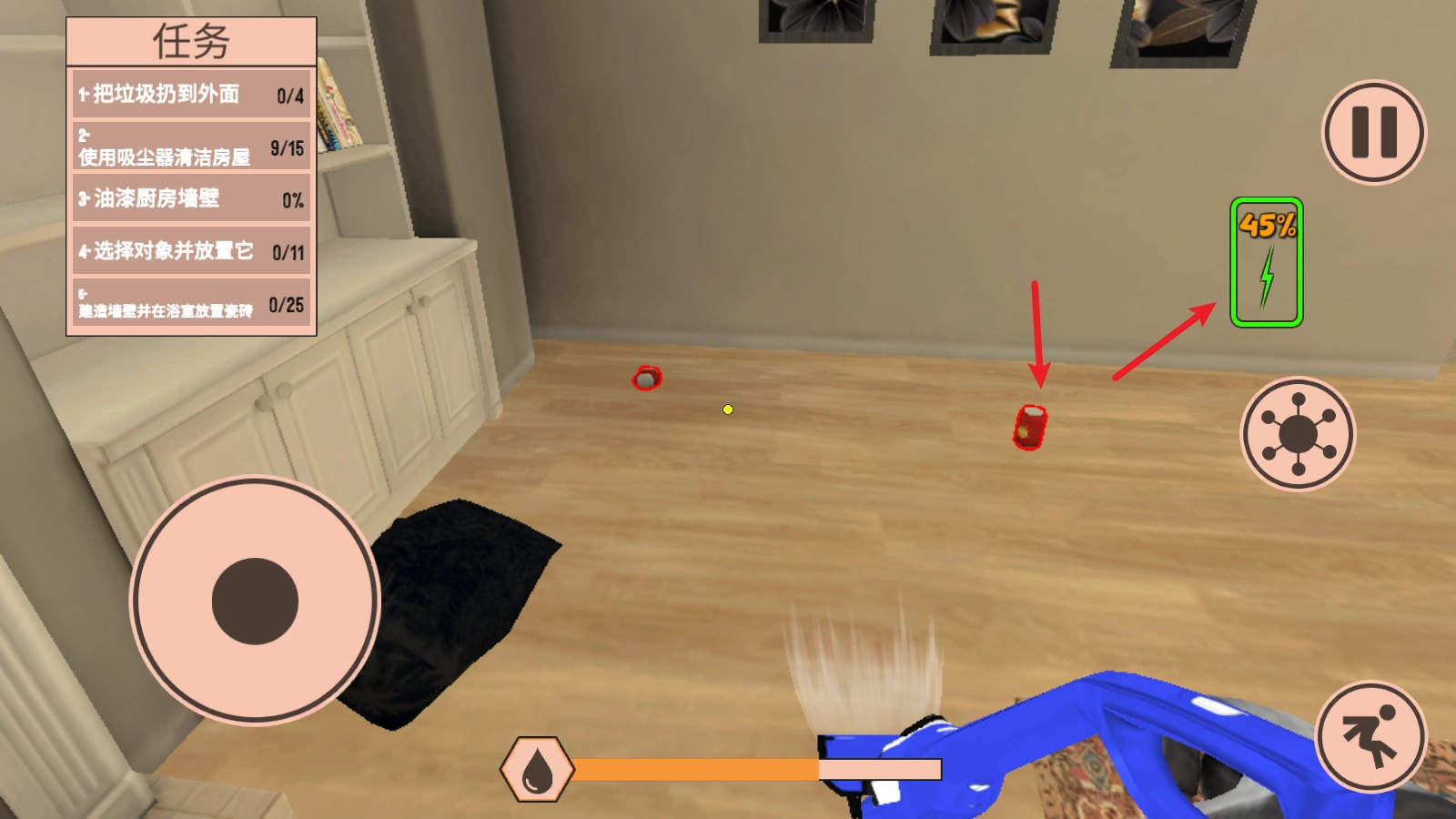 首先点击右侧的按钮,通过这个按钮能够切换自己的行动,接着我们取出吸尘器。