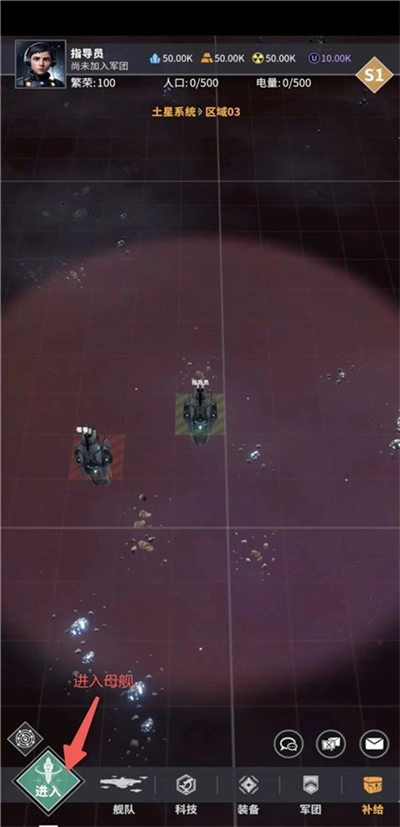 进入赛季地图后,屏幕中央会停泊着您的母舰,接下来我们先进入母舰,创建属于我们的第一支舰队。