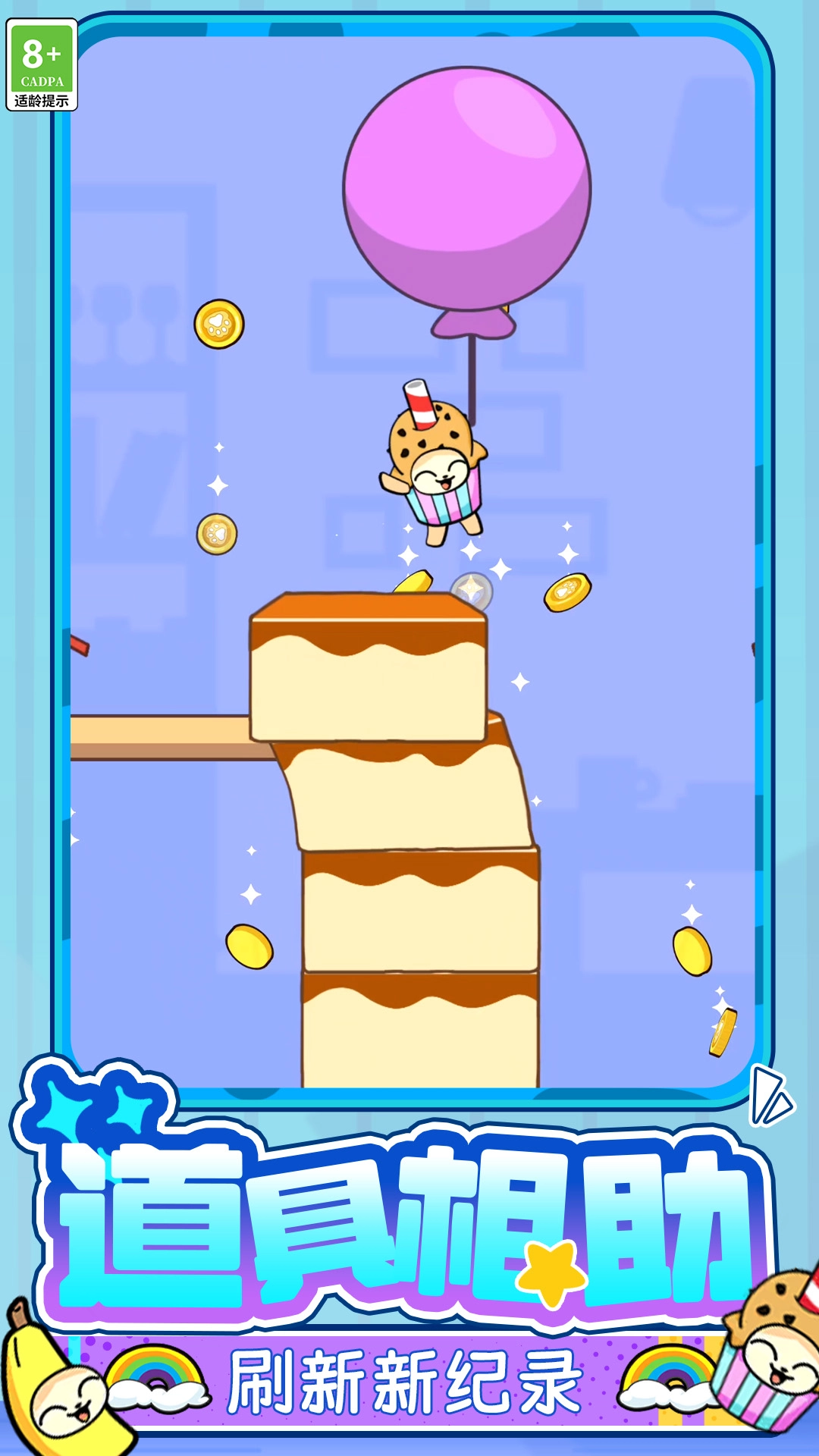 3、随着攀登楼层增加,香蕉猫会解锁新能力,通过消耗金币还能升级能力,让二段跳高度更高、冲刺距离更远。