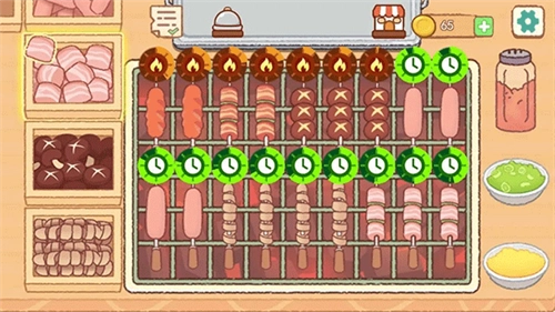 按照客人的需求点击对应的食材,点击后玩家要把食材放置到指定位置,随后开始烤制。