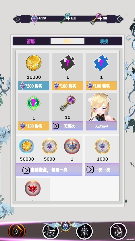 商店购买物品还有祈愿抽奖获得物资。
