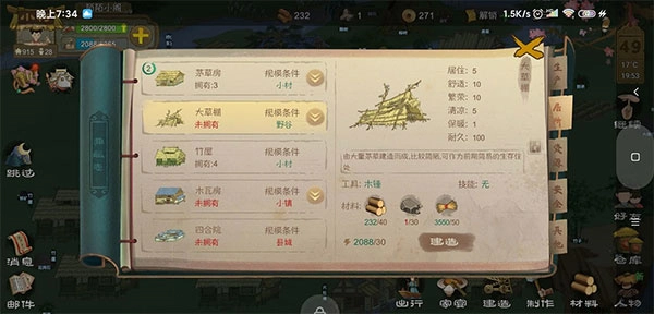 而且在前期阶段,你得搭建两座茅草棚屋,它们会自行挑选茅草屋居住。