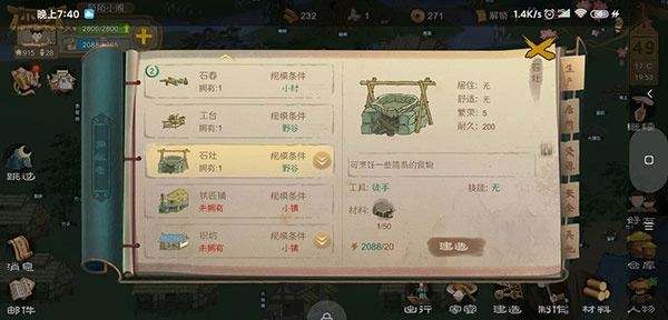 2、天黑之后可以选择快速跳过到第二天。第二天,安排两位老人去采集野菜,确保食物供应不断;年轻人则负责采集石头和木头,优先建造衣坊。毕竟要赶在夏天到来前做好“清凉”的衣服,否则角色容易中暑引发内疾,生病会导致劳动力下降,严重时还需要用药治疗,这对前期人手紧张的我们来说非常不利,所以能提前避免的问题尽量避免。