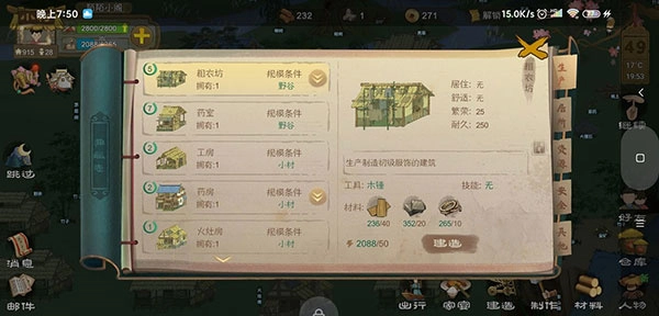 粗衣坊建成后,就可以着手制作衣物了(主打清凉款),这需要先去采集亚麻和葛草。另外也可以打造些战甲和武器,毕竟敌人随时可能入侵。要是材料有富余,还能做几件草衣——它能减少50%的负面buff,遇到恶劣天气时穿上,就能继续干活;要是有蓑衣就更好了,能把负面buff降低100%,不过前期蓑衣基本得靠从商人那里购买。等衣物都准备妥当,接下来就该采集建造药室和宗厅的材料了。稳妥点的做法是先建药室,万一生病还能制药治疗,毕竟建造宗厅要花很长时间(宗厅也很实用,能加快精力恢复的速度)。