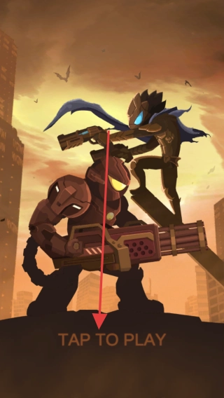 游戏启动界面,点击【TAP TO PLAY】即可开始,你将操控机甲角色,开启在城市中的冒险战斗之旅。