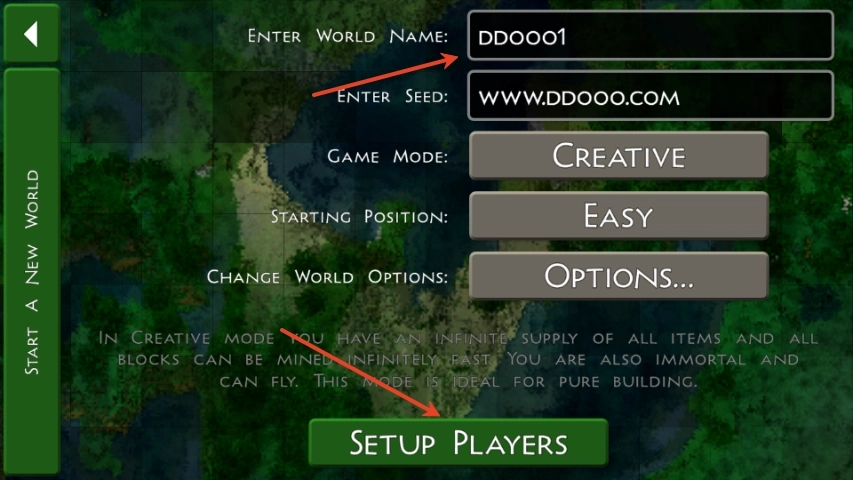 3、创建地图时,需填写地图名称、输入种子代码,同时选择游戏模式和出生点难度等设置。