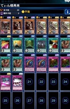 沉默魔导师卡组是一套资历较老的卡组,尽管推出时间有些“年头”,但实力依旧不容小觑,直到现在依旧能让玩家们津津乐道。这套卡组的核心构筑思路大致如下:等级4的怪兽卡投入3张,等级提升魔法卡投入3张,等级8的怪兽卡投入1到2张,占卜师怪兽卡投入3张,幻影龙或封魔这类卡片则满3张投入;技能方面选择城之内的最终一搏;至于其他功能性卡片(俗称“坑”),可以分段搭配镜子、遥控器以及鸟凤阿努比斯。如果玩家运气不错,这套卡组有机会冲上决斗王以下的一个段位,甚至冲击决斗王也并非完全没有希望,最终的结果还是要看玩家的实际操作水平。