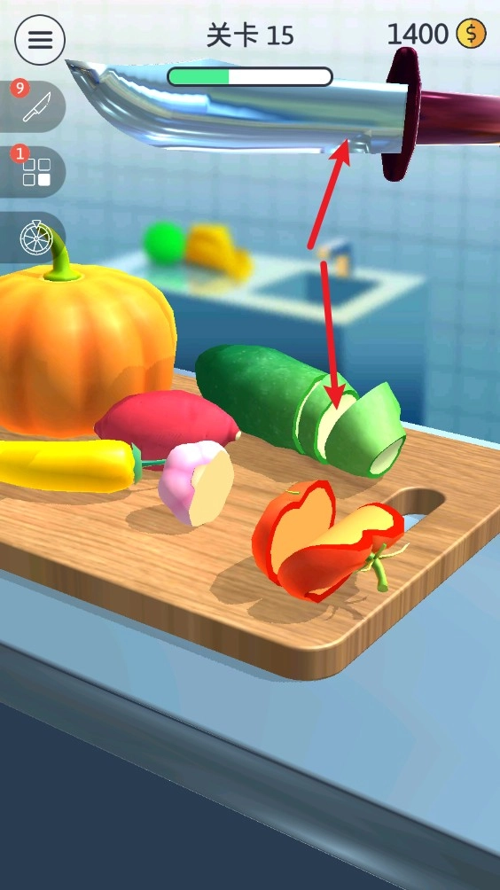 在关卡里,我们只需点击屏幕,就能让刀落下,切割眼前的物品。